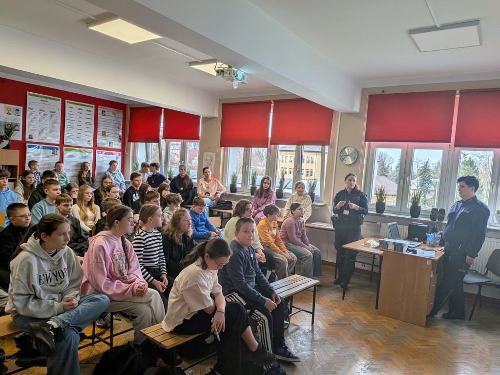 17 marca 2026 r., w ramach obchodów Dnia Bezpiecznego Internetu, w naszej szkole odbyło się spotkanie profilaktyczne z funkcjonariuszkami Policji. W wydarzeniu uczestniczyli uczniowie klas IV–VIII oraz uczniowie z Samorządu Uczniowskiego.