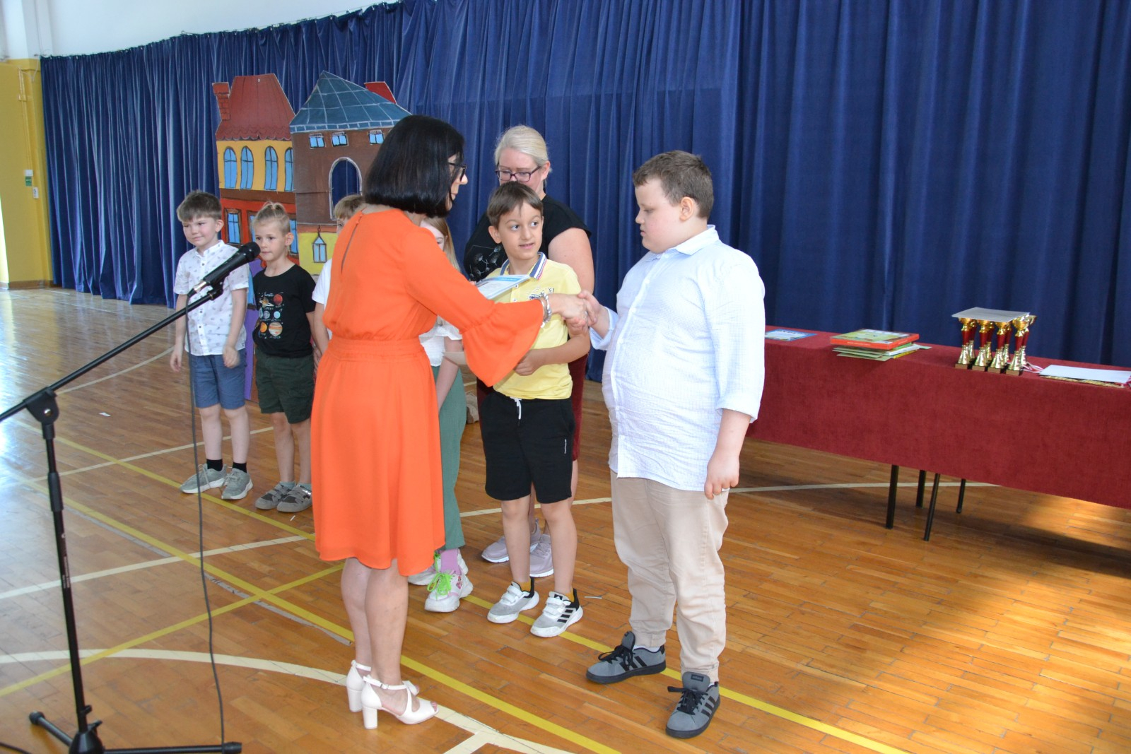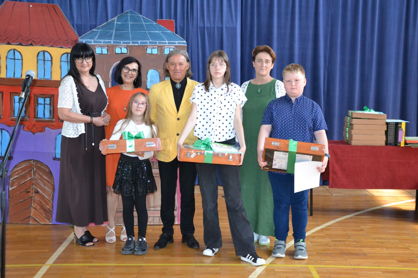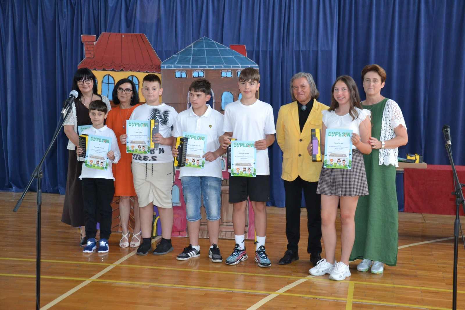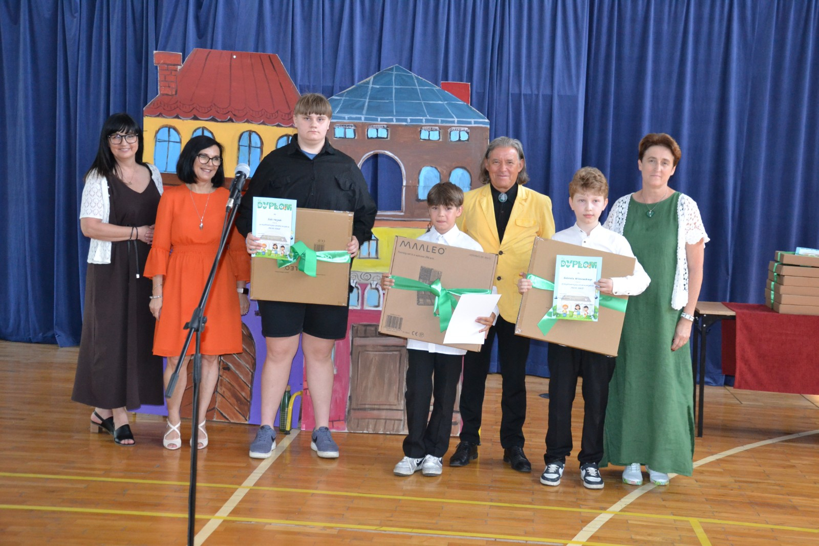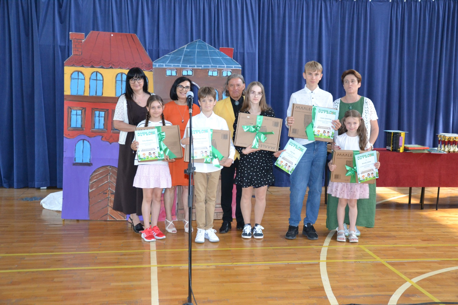Środa 25. 06. 2025 r. w naszej szkole obfitowała w nagrody. Był to wyjątkowy dzień! Szkolne, powiatowe, ogólnopolskie i międzynarodowe sukcesy naszych uczniów zostały docenione w obecności całej społeczności szkolnej i wyjątkowych gości. Zaszczyciła nas Pani Dyrektor Wydziału Oświaty i Sportu Magdalena Lehnart oraz Pan Andrzej Kubik- Prezes firmy GPR Guma i Plastik Recycling oraz Prokurent firmy REPLAS Recycling Plastic, któremu towarzyszyła Pani Ewelina Machnicka. Wyjątkowe nagrody przekazane przez naszych gości i wspólnie wręczane z Panią Dyrektor Ewą Leniar sprawiły, że nasi uczniowie poczuli się bardzo docenieni. Ważną częścią tej uroczystości był występ Szkolnego Zespołu Teatralnego ,,Muza z Jedenastki ".Zaproszona na uroczystość Dyrektor Wydziału Oświaty i Sportu Magdalena Lehnart po występie pogratulowała uczniom osiągniętych w tym roku sukcesów scenicznych, wręczyła pamiątkowe dyplomy, puchary i medale oraz przyniesione ze sobą upominki. Wszystkim uczniom i nauczycielom serdecznie gratulujemy, a sponsorom dziękujemy za ufundowanie wspaniałych nagród.
