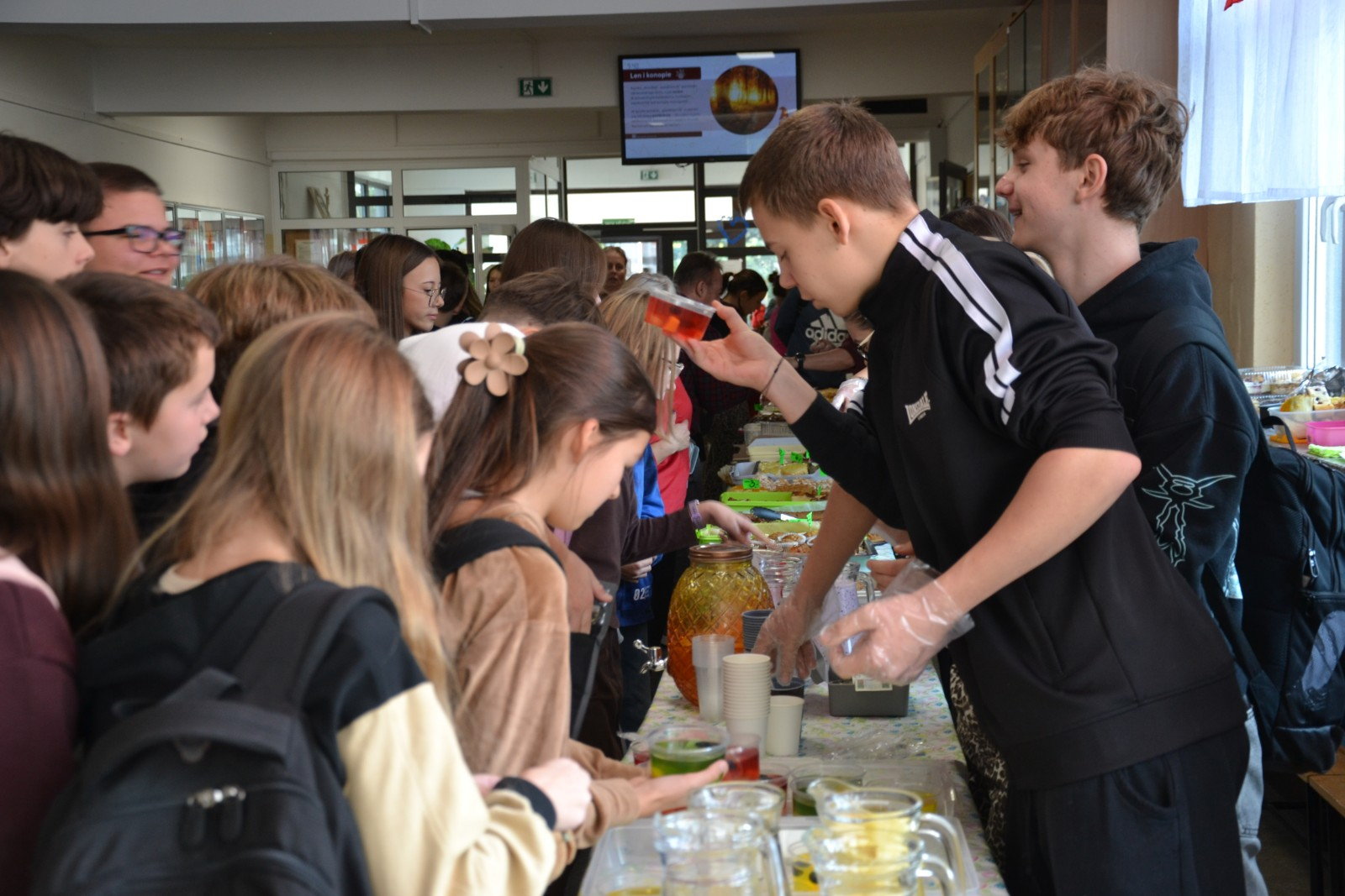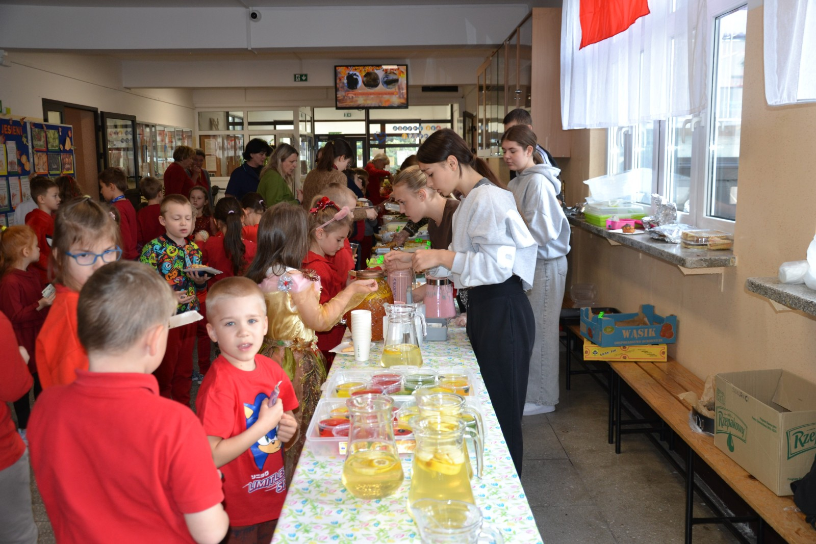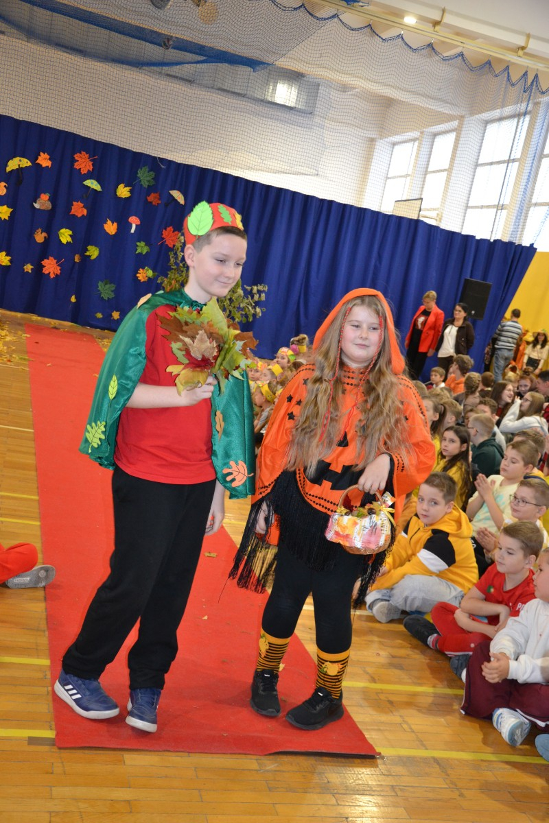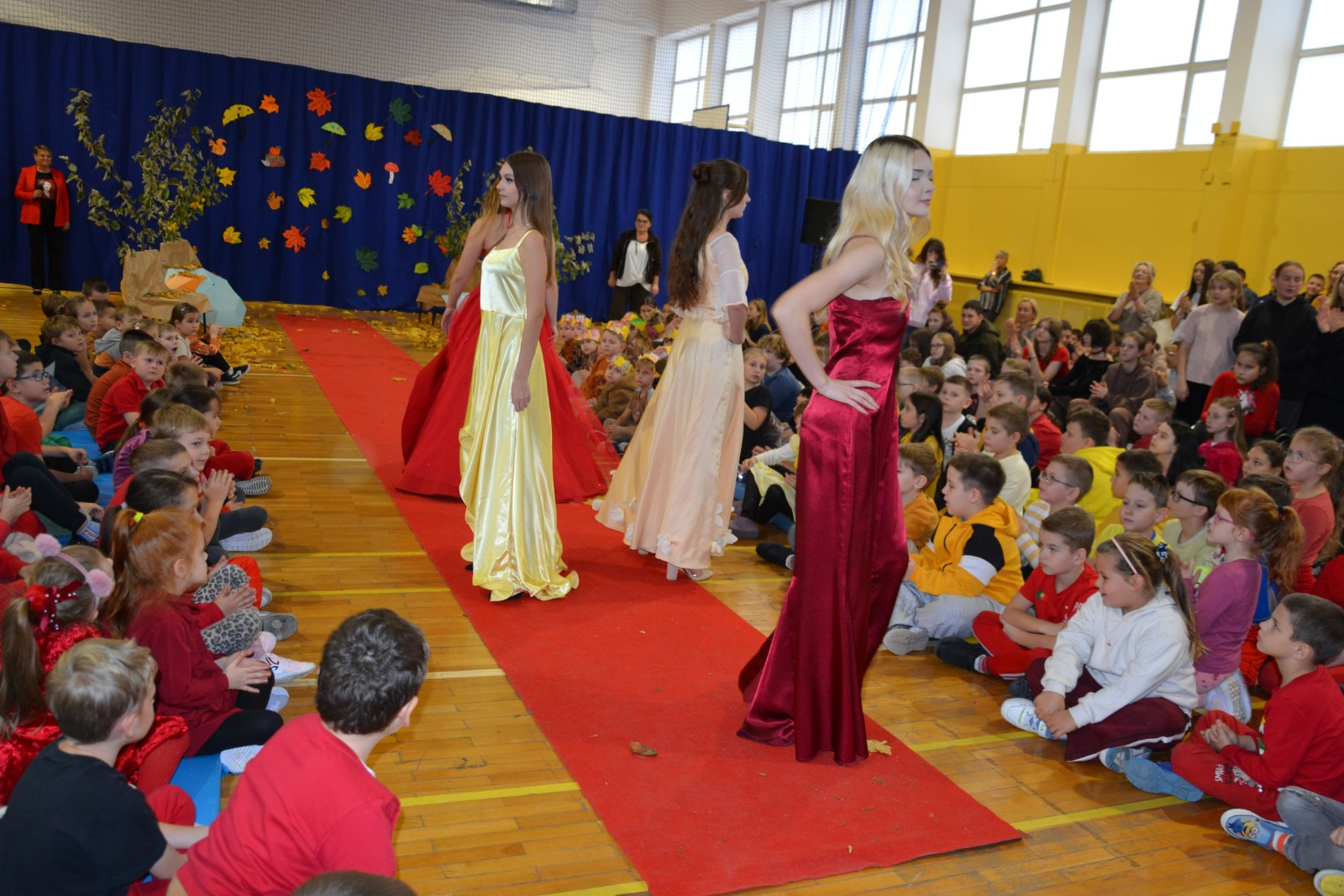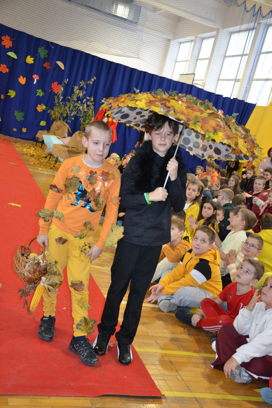 22 października w naszej szkole odbyło się wielkie święto jesieni. Jest to już cykliczna akcja charytatywna, w trakcie której organizowane są okolicznościowe konkursy, pokazy i kiermasze. Dzień ten przyniósł niezwykłe emocje, gdyż nasi uczniowie z zaproszonymi dorosłymi uczennicami z Zespołu Szkół Innowacyjnych mogli zaprezentować się w swoich przepięknych strojach. Pokaz rozpoczęła Pani Dyrektor, co dodało odwagi najmłodszym uczniom. Przejście po czerwonym dywanie przed całą szkołą to ogromne wyzwanie. Gratulujemy więc wszystkim odważnym, którzy pokazali swoje piękne jesienne stroje. Po estetycznych doznaniach każdy mógł włączyć się do akcji charytatywnej. Koktajle, galaretki, lemoniada, ciasta i gofry zniknęły bardzo szybko. W holu głównym ustawiona została również spiżarka tematyczna, w której można zobaczyć wszystkie dary jesieni w formie owoców, warzyw, kwiatów oraz przetworów. Święto nasze nie byłoby tak wyjątkowe, gdyby nie nasi goście. Uczniowie z klas fotograficznych z Zespołu Szkół Innowacyjnych zapisali to wydarzenie w fotograficznym albumie. Serdecznie dziękujemy Dyrektorowi, Nauczycielom i Uczniom tej szkoły za pomoc w organizacji imprezy i poświęcony czas. Podziękowania kierujemy do wszystkich, którzy przyczynili się do organizacji tej wyjątkowo barwnej imprezy