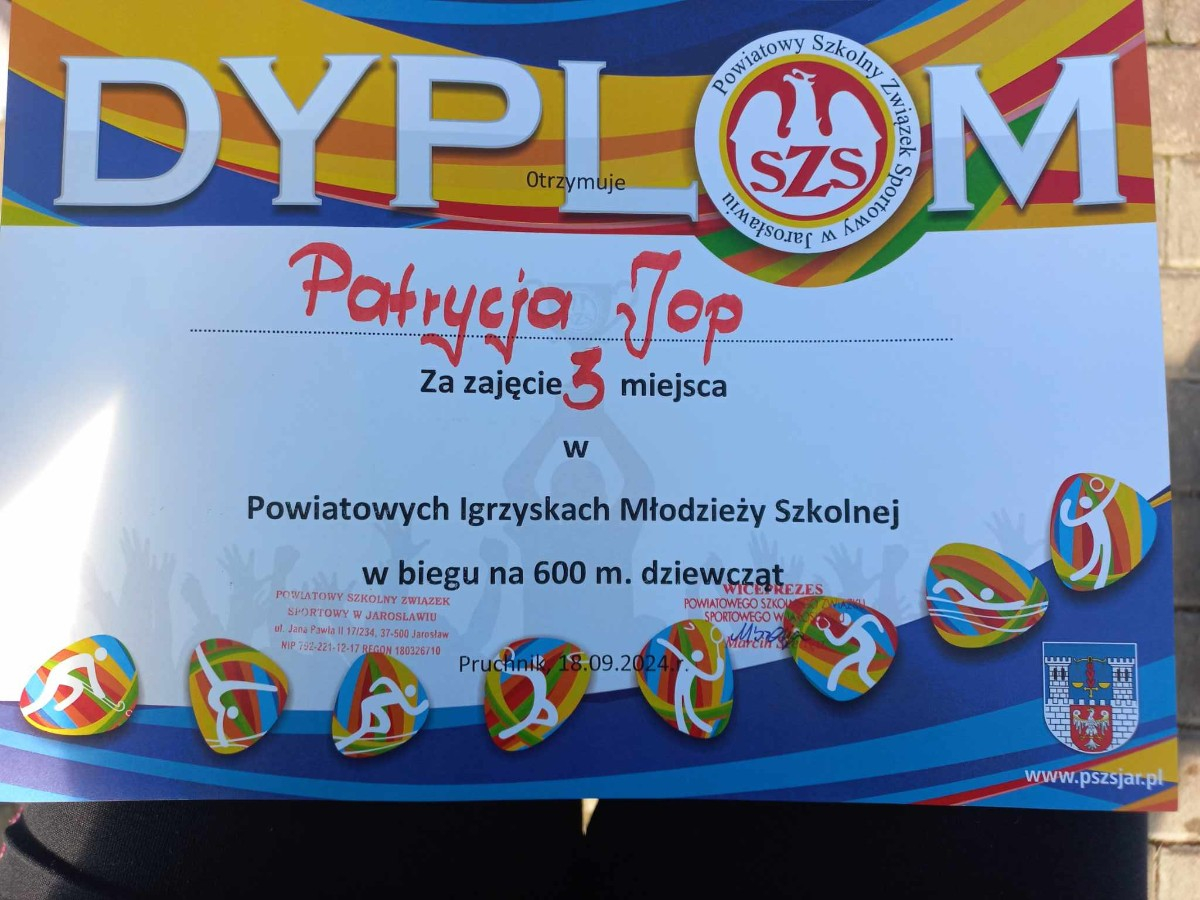 Dnia 18 września w Pruchniku odbyły się Powiatowe Igrzyska Młodzieży Szkolnej. Naszą szkołę reprezentowały uczennice z klas siódmych: Basisty Martyna, Wyskiel Oliwia, Dryś Agnieszka, Jop Patrycja, Pawlik Maja oraz Tomas Patrycja. Najlepszą zawodniczą została Patrycja Jop która uzyskała III miejsce w biegu na 600 m. w kategorii dziewcząt.