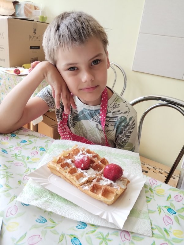 Miło było rozpocząć długi weekend, wykorzystując sezonowe owoce. Na zajęciach otwartych (29.05.) powstały przepyszne gofry z truskawkami, których zapach roznosił się po całym sektorze A.