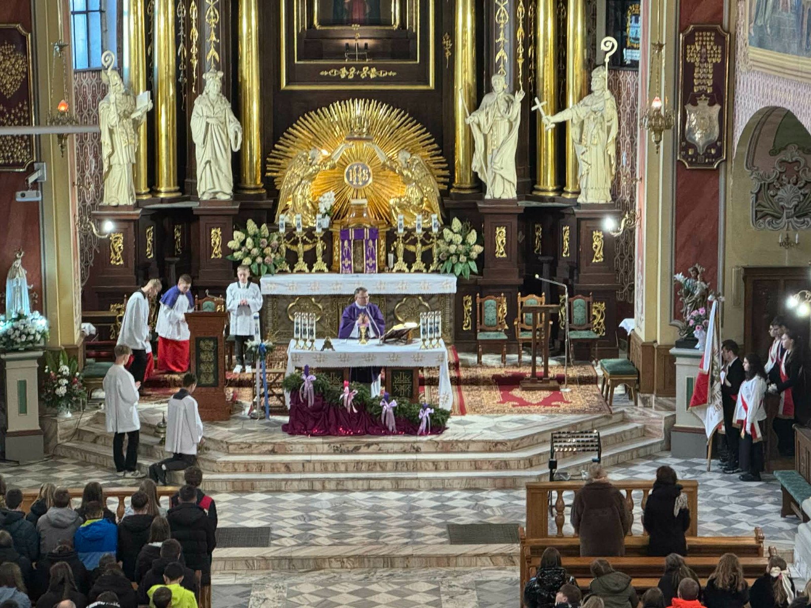 Uroczystości rozpoczęły się Mszą św., którą swoim niezwykłym głosem uświetniła pani dr Dagmara Moskwa. Homilię łączącą patrona szkoły, święta Bożego Narodzenia i nasze codzienne życie ukierunkowane na miłość do drugiego człowieka wygłosił ks. Marek Demski, nasz szkolny katecheta.