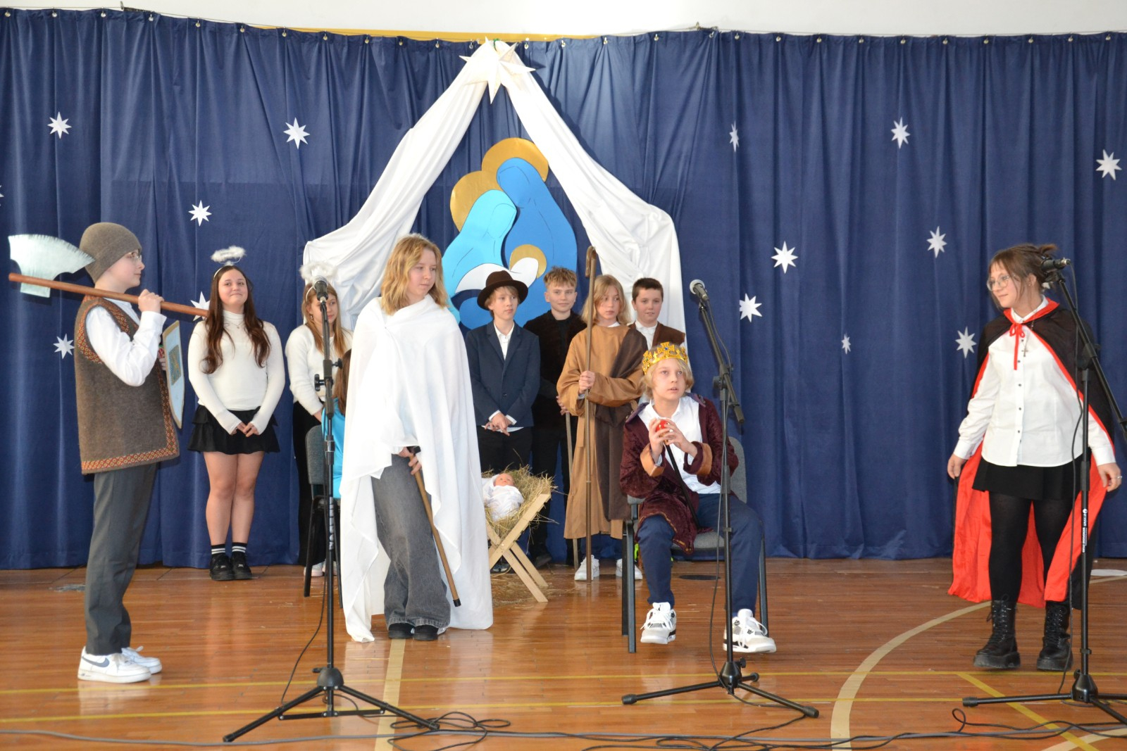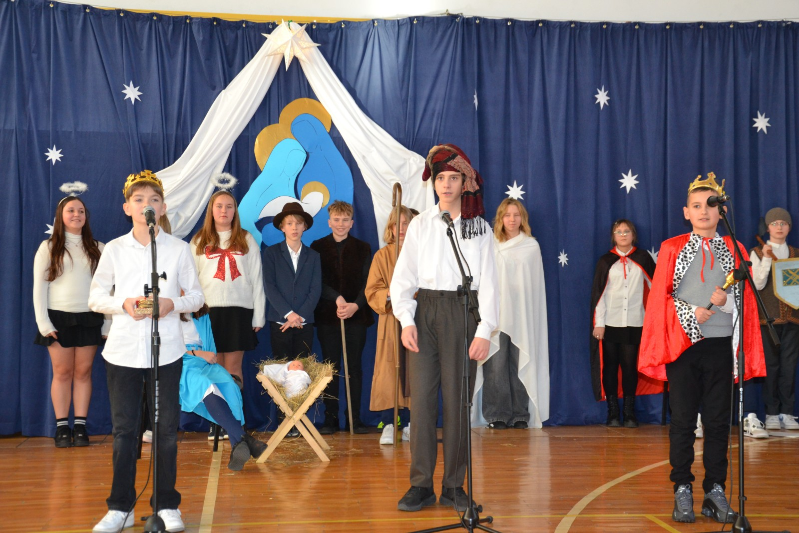 Akademię rozpoczęła gromada zuchów, która przyniosła Betlejemskie Światełko Pokoju, a śpiew pieśni „Światło w Betlejem” wprowadził wszystkich w świąteczny nastrój. Nastrój, który podtrzymali uczniowie klasy 6c, zabierając nas w przeszłość do groty betlejemskiej. Odwiedził nas także sam Adam Mickiewicz, przypominając nam wszystkim ponadczasowe hasło: „Miej serce i patrzaj w serce”.