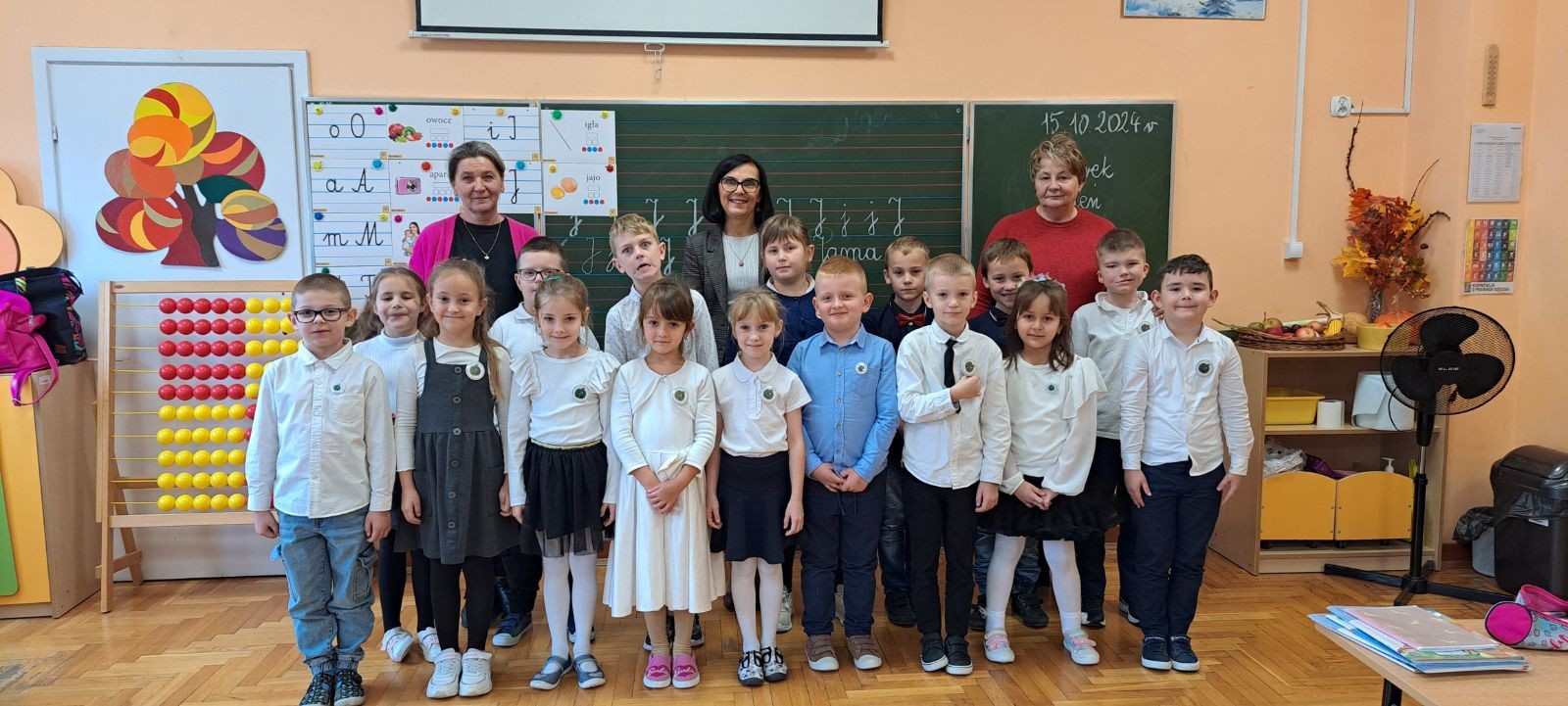 15 października Pani Dyrektor Ewa Leniar wręczyła uczniom klas pierwszych emblematy naszej szkoły. W tym dniu dzieci zostały oficjalnie przyjęte do grona uczniów. Pani dyrektor pogratulowała wszystkim pierwszoklasistom i życzyła wielu sukcesów na nowej drodze obowiązków szkolnych.