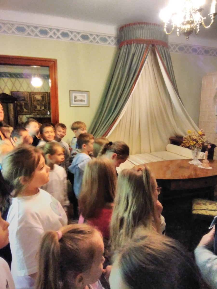 Podczas zajęć w muzeum w Zarzeczu uczniowie klasy II mieli okazję przekonać się, jak ubierano się w czasach pierwszej właścicielki pałacu Magdaleny Dzieduszyckiej Morskiej. Ze starej walizki wyciągano i przymierzano elementy garderoby. Oglądano oryginalne grafiki modowe i podziwiano wnętrza pałacu. Dużym zainteresowaniem cieszył się gabinet hrabiego Dzieduszyckiego, w którym z zaciekawieniem oglądano okazy ptactwa oraz trofea myśliwskie. Dopełnieniem pobytu był spacer w malowniczym parku wokół stawu z wyspą wśród wiekowych drzew i przepięknych kwiatów w blasku jesiennego słońca. Dziękujemy za miłe przyjęcie.