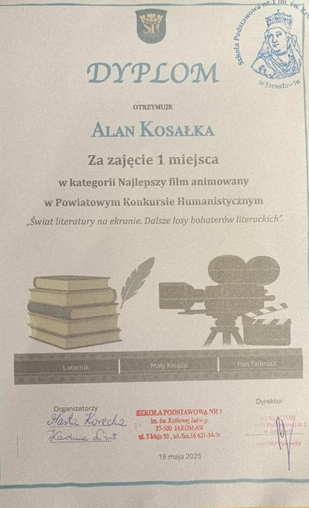 „Świat literatury na ekranie: Międzyszkolny Konkurs Adaptacji Filmowych Lektur Szkolnych - dalsze losy bohaterów”.