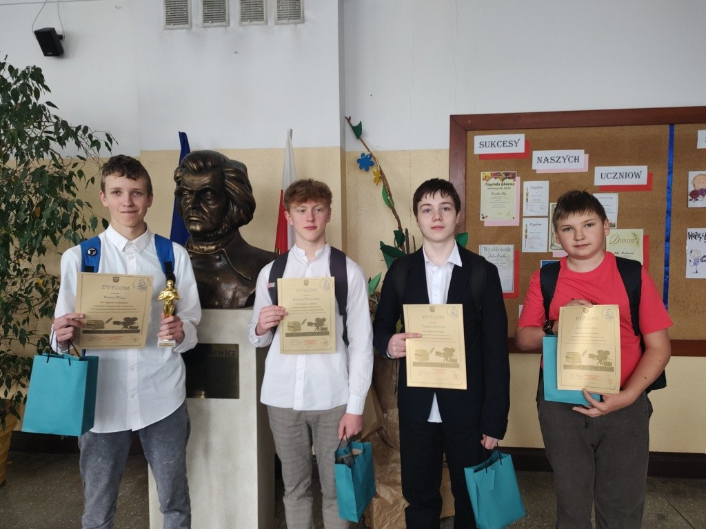 Uczniowie naszej szkoły (Borys Wilk, Alan Kosałka, Mikołaj ...Czytaj więcejPrzejdź do pełnej zawartości artykułu: Zwycięstwo naszych uczniów w powiatowym konkursie humanistycznym, organizowanym przez SP 1 w Jarosławiu -